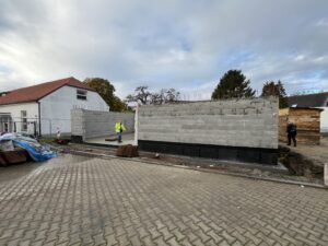 Říčanská škola se nám rýsuje. V lednu proběhlo betonování pilot, v únoru proběhl kontrolní den základové spáry a za necelé tři měsíce zde vyrostlo podzemní parkoviště a proběhla příprava na vylévání stěn prvního nadzemního podlaží. Než se tedy pozdemní část domu definitivně zakryje, vydala se naše kancelář na exkurzi.