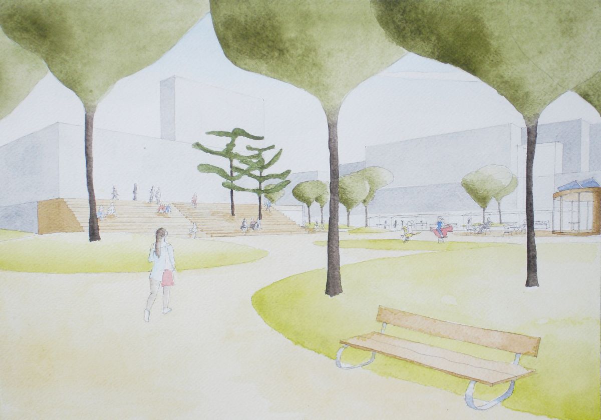 Celé řešené území tvoří jeden volně plynoucí, parkově upravený prostor.