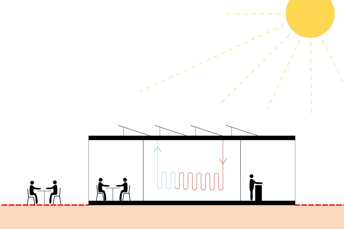 Pavilon je v maximální možné míře energeticky soběstačný.